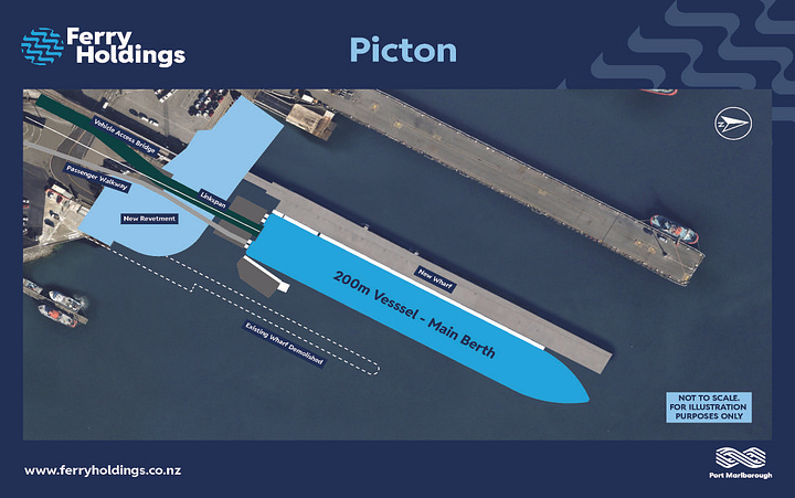 Ferry Holdings has released a number of renders of the new Cook Strait Ferries that will replace the existing Interislander fleet. Ferry Holdings also released maps showing the upgrades and new infrastructure that will be constructed to support the ferries.