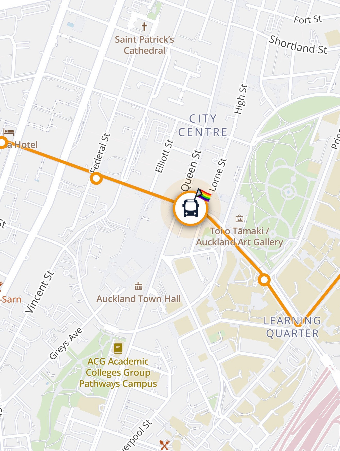 To celebrate Pride month, Auckland Transport have added Pride flags to their bus tracking. In previous years, the flags were also shown on live tracking for trains and ferries.