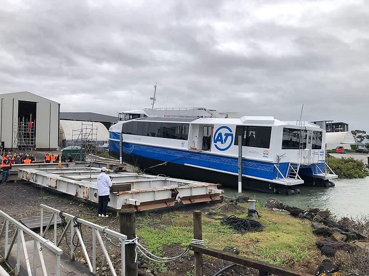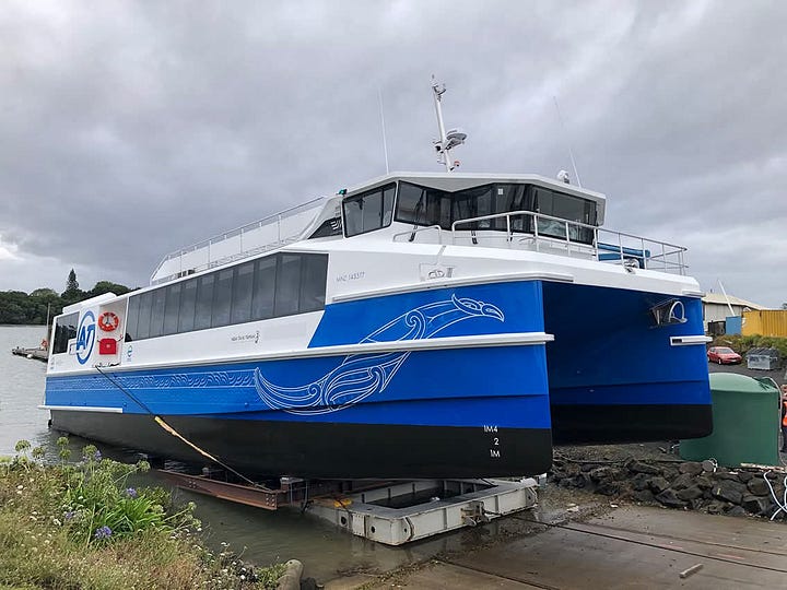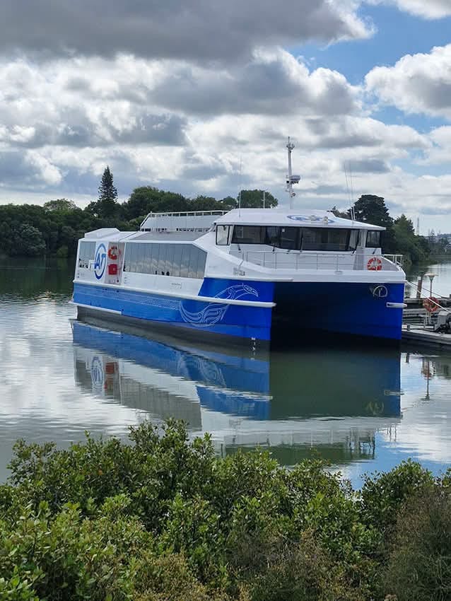 Waitematā 1, Auckland Transport’s first Hybrid-electric ferry, has arrived in Auckland from boat builder Q-West in Whanganui. Waitematā 1 is expected to have a 300 passenger and 28 bike capacity, which will see use on the Devonport route sometime in 2026.