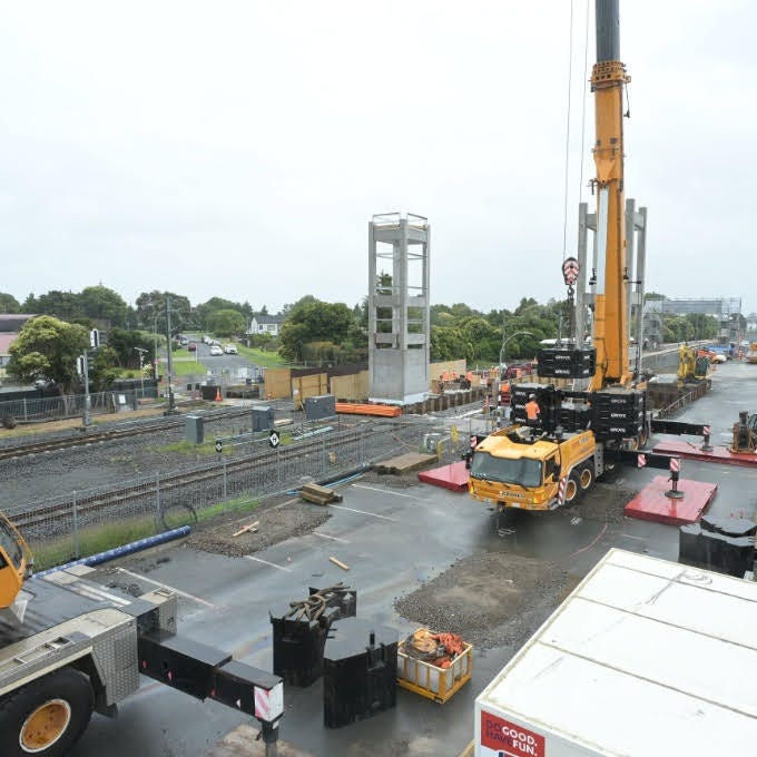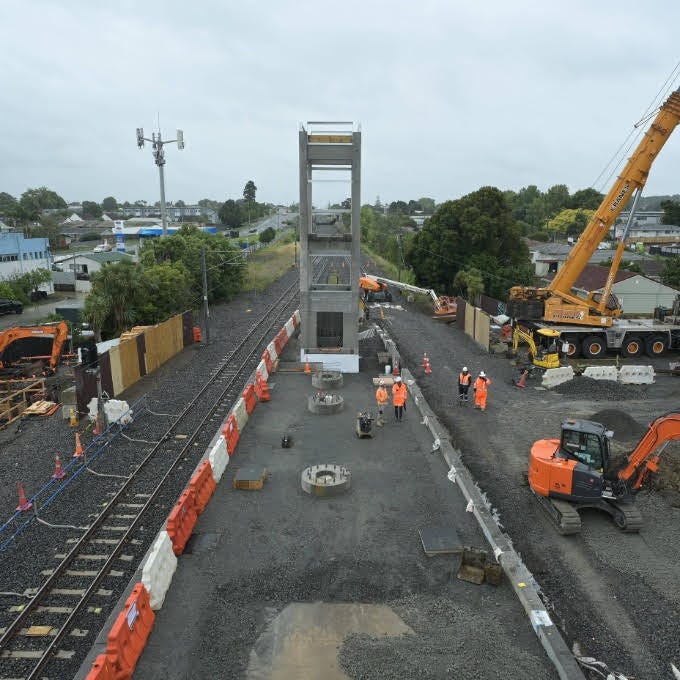 Work over the weekend will include the continuation of work at Henderson station to complete the Third Platform, Egress/Staff Footbridge and works at the three Level Crossing Removal sites at Glen Innes, Te Mahia and Takanini with the installation of the new footbridges.
