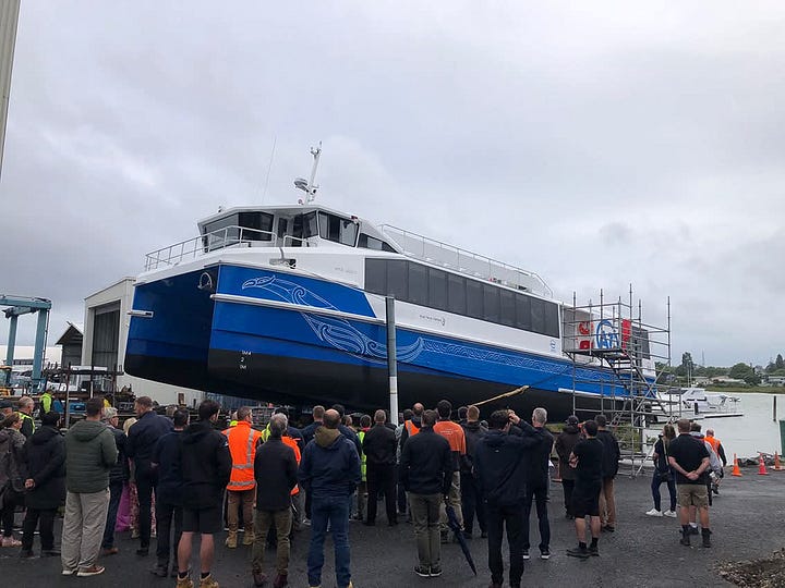 McMullen & Wing have shared pictures from the recent launch event for AT2. Due for launch the Tuesday prior to Auckland Anniversary weekend, wind gusts meant that she only touched that water briefly on her planned launch day, with her actual full launch a week later.